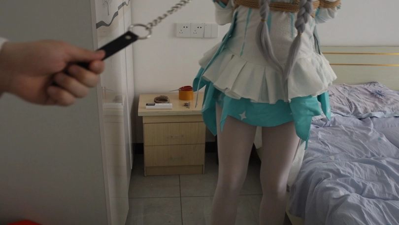 在自己家中,妹子被全身紧缚放在床上,摄影师一边说着要让妹子再进行一次脱缚挑战一边把妹子双手包成小球,自己还用[不可描述]和跳弹在旁助攻,这样的挑战怎么可能完成呢。在到了规定的时间后,摄影师让妹子进行走绳与鞭打的惩罚游戏,在妹子精疲力竭后再把用水刑折磨(水刑是盖块毛巾在脸上然后在上面喷点水类似[不可描述]吗)着她,在经过这么一番调教后,妹子只剩急促呼吸的力气了。