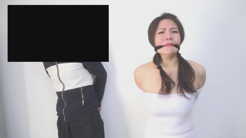 林静被丝袜勒嘴,王老板则被毛巾塞嘴。林静和王老板苦苦挣扎,接着绑匪过来,将两人的塞口物互换。把王老板塞嘴的毛巾塞到了林静的嘴里,又将勒过林静嘴巴的湿淋淋的丝袜勒到王老板嘴里。接着拿出一个倒计时的爆弹,按下按钮,两人疯狂地挣扎。挣扎一段时间后,绑匪又出奇招,将两人抱在一起绑上,然后把爆弹塞到了林静露背装的衣服里,之后离开。林静疯狂地挣扎着,终于挣脱了绳索,解锁了炸弹。然后顾不上自己的嘴里还塞着丝袜,嘴外还封着胶带,她先把王老板解开,接着再撕开自己嘴巴上封的胶带以及嘴里塞的肉丝袜。