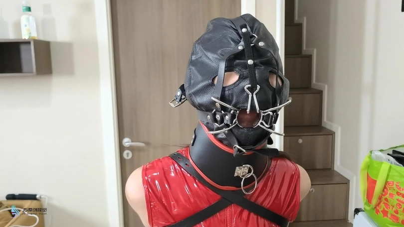› 【JS】【夏沐】皮革拘束单手套头套马具口环鼻钩脚铐棒棒刺激