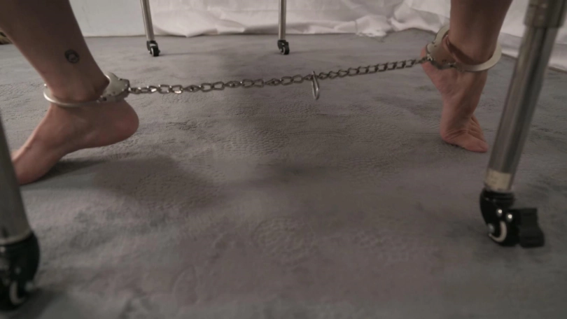 终于有机会整治一下雪碧逃脱偷懒的坏习惯。刚刚发明了铁架小车结合木枷的新固定方式,准备拿雪碧开刀,木枷固定好还没上镣铐,就出去接电话了。这时候她用小眼神看到机会来了,就开始搞小动作了,脱掉鞋子用脚摸索到开木枷的小扳手,用脚趾夹住想送到手里,试了几次,哪有那么容易,本主及时赶回,先用镣铐把脚铐牢,手上也加了手铐。不是最怕电击吗,那就好好电一下偷拿钥匙的手和脚,当然,其他地方也不能错过,当电她胸口时,她竟害怕到把36D的胸来回甩起来,还挺出乎意料的,最大的惩罚莫过于雪碧平时推脱使用的筋膜枪,这玩意太厉害,本S的习惯是一次就开到最大档位,很快就让可怜的雪碧求饶了,经常回味雪碧那撩人呻吟声,这次能感受到她声音里是充满惶恐的,经过筋膜枪的洗礼,看她整个人都消停了。