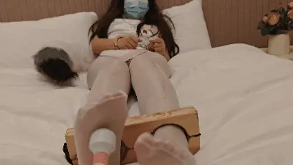苏苏恢复意识,发现自己被五花大绑了起来,两只腿也被胶带缠上了,私处还戴上了啵啵贝,吮吸一会儿就又晕了过去,醒来后已经变成了主人的模样,自己乖乖戴好镣铐脚枷用zdb玩弄自己,之后继续打开波波贝进行tk,两只油亮白丝小脚十分可爱,接着换上颈手枷和口球继续折磨,最后进行服从训练并肘跪姿犬爬