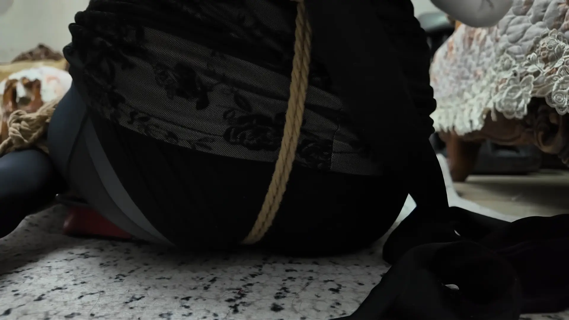 柴哥把佳雯和芷溪带上项圈,吊在了铁架下面,