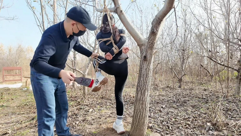 晨跑的十一一不留神跑到了一片小树林,结果被人绑架,绑好在地上被鞭子狂抽,又被吊到树上打屁股,这还不够,又绑到树桩上,用棒棒玩弄,一直到完全失禁....大量的鸟液喷涌而出