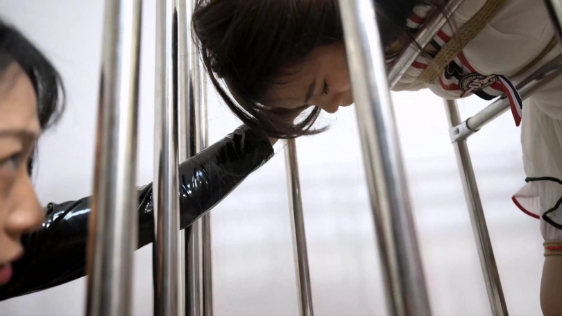 言妍现已成为第二代口水王,一会就一大片那种,先是出其不意把垫子搞湿,换上了单子又是一大片,真是一大惊喜。这次言妍被锁在笼子里,进了笼子也不能轻松,得用绳子和杆子固定住才有意思,看来是不太舒服,刚固定好,那久违的呻吟声就激发出来了,接下来就是女王沐小雨出场,粉丝戏称言妍和沐小雨为黄金搭档,沐小雨手法老练狠辣,喜欢玩弄完人家脚脚再把高跟鞋给人家再穿回去,这次还给人家穿反了,搞得言妍事后一直吐槽,而且还直喊口渴,流了这么多能不口渴吗?