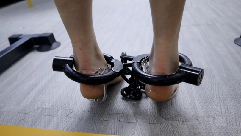 第一次使用垫脚器,非常好玩的小东西,绑在脚底自己又拿不下来的话,就只能强迫垫起小脚丫,放下就会被扎到很疼的哦!