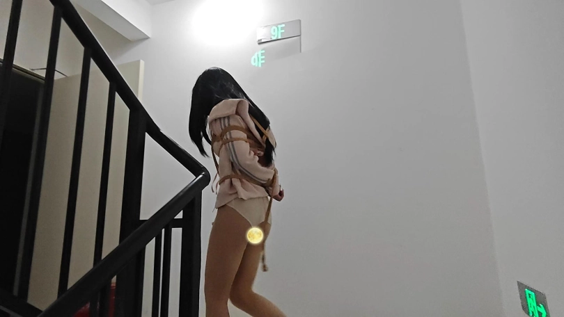 一只一直想体验野被外捆绑放置的m联系了挺久,由于是初次体验于是就找了一个陌生的楼梯间开始尝试,捆绑固定好在公共楼梯间过后架好录像设备开始记录之后,我迅速离开,等待视频结果带来的一系列惊喜,第一次回来之后,满地的口水,m开始有点慌乱无章,然后剪掉裙子和内内,再次离开,第二次回来之后满地的尿液,也不知道什么时候失禁了,第三次离开过后,刺激的事情发生了,回来之后发现刚刚仍在地上的内内不了了!过程视频中见,简直尴尬到了极点的m已经无言以对,心理激动到定点的时刻,必须再继续在楼道罚跪,然后强制喉咙训练,捆绑游荡