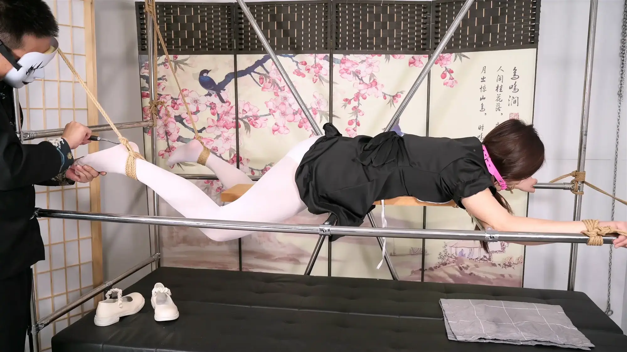 有首很老的歌叫《睡在上铺的兄弟》,我听这歌的时候脑子里一直在浮想有个妹子睡在上铺的场景,咱们今天就来演示一下如何强迫妹子睡在上铺,就是床板小了点,睡姿得是趴着。睡前的运动是必不可少的,妹子怕什么就来什么,对于雪碧来讲当然是怕痒了,刺轮对于她敏感的身体也是不小的折磨,等她精力消耗差不多了就可以安心躺在下面睡觉了,雪碧这次的呻吟声格外凄美,伴着入眠的最佳音效,当然这个姿势还可以解锁更多玩法,比如那小小的床板是可以前后移动的,高度正好设计在自己的腰靠下的位置,太多想象空间,就不在这里演示了。