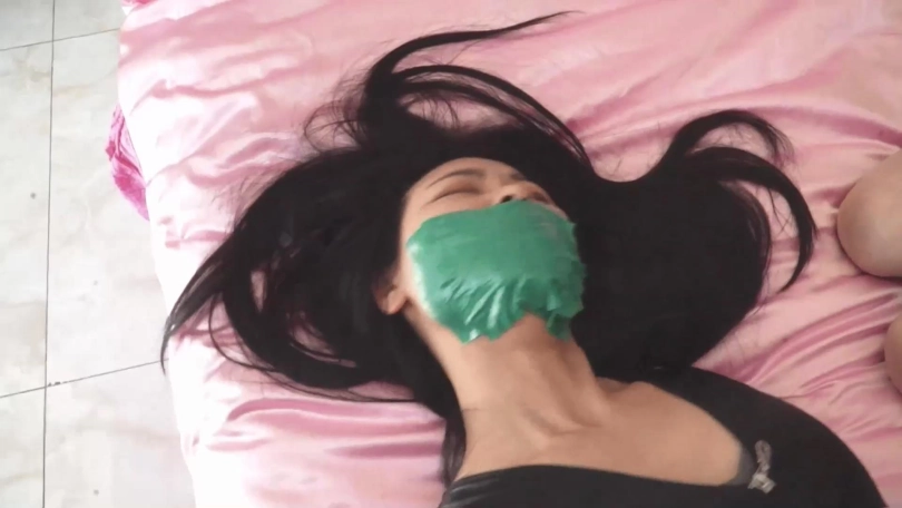 夏炎离开后,李诺拼命挣扎,挣扎一会儿后,李诺成功挣脱左手处捆绳,自己撕掉封嘴白色绷带和绿色胶布,慢慢拽出口中6只肉色短丝袜,大口喘气,愤怒地说:“这个坏女人,把臭袜子塞我嘴里,等回来看我怎么收拾你!”