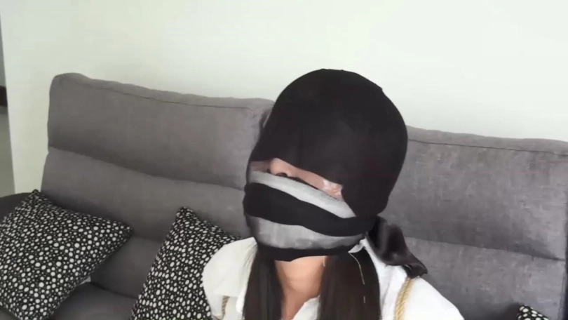看点:多重塞嘴封堵;黑丝袜脚面;蒙眼套头;挣脱解除塞嘴封堵。