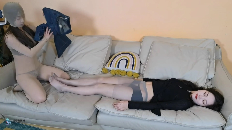 女匪潜入一家房子藏了起来,女主回到家中沙发上休息。女匪在丝袜脚上喷了药物,悄悄来到女主身后抱住她,用脚捂住女房主的口鼻。很快女主便不再挣扎。女匪脱掉房主的衣服,给她换了一身连体丝袜衣,并用绳子将其捆绑起来。女主的手被攥着丝袜,外面用短丝袜套在手上,外面用胶带缠绕,这样女主的双手攥成了拳头。女匪将一条丝袜塞进对方嘴里,用绷带缠绕放置吐出来,在用丝袜套在房主的头上。很快女房主醒来,发现自己全身被捆绑起来,嘴里还被塞着东西,不断的挣扎。这时女匪走了过来,不断的抚摸着女主的全身挑逗着对方。她贪婪的捧起女主的双脚闻着。用把女主的双退套在一条丝袜里固定。女匪拿出一个棒棒刺激着女主的下面,将自己的双脚放在女主的脸上,让对方闻。可怜的女房主就这样被玩弄着,房间里棒棒的震动声和女主发出享受的呜呜声此起彼伏。
