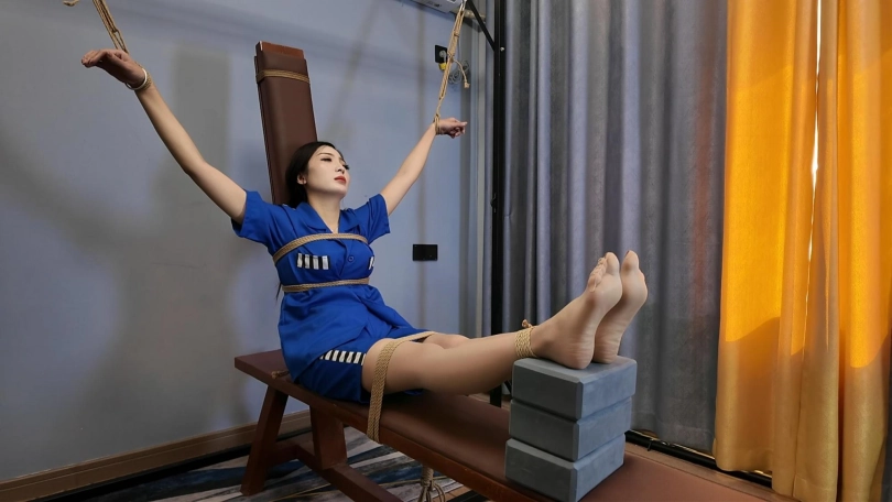 女犯李佳佳被各种刑法审讯,大字捆绑,后手吊,老虎凳,后手观音驷马放置,最后关笼子