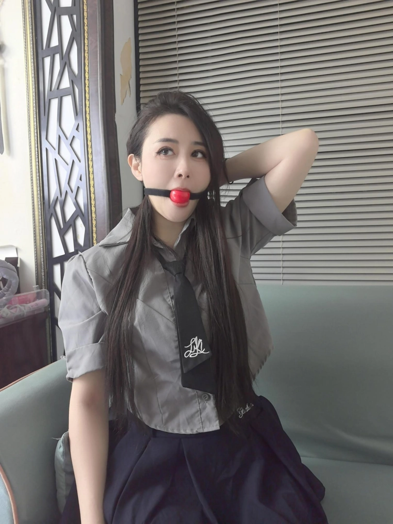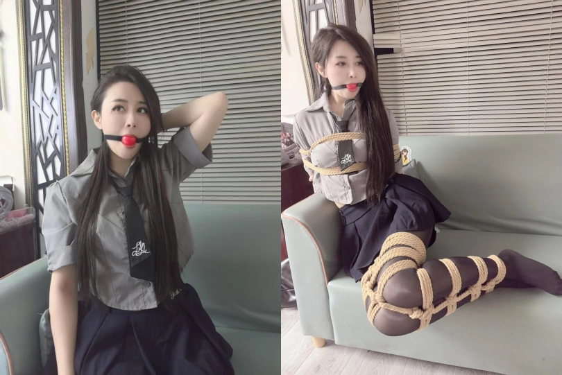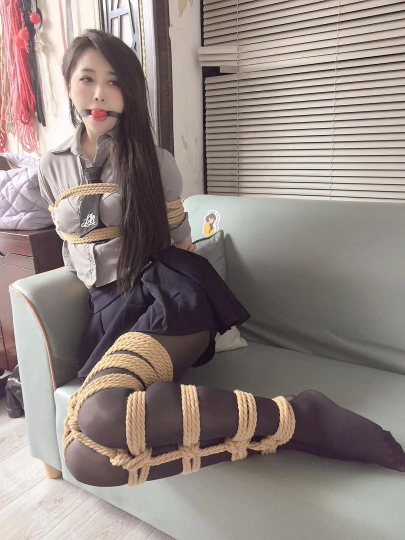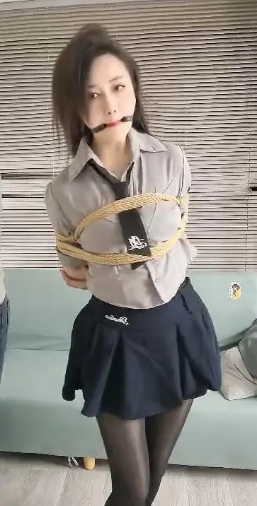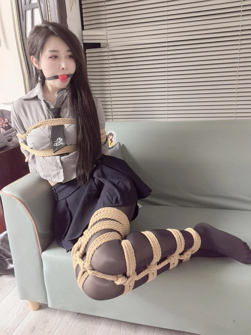 模特蓝莓,直播间看到的妹子,觉得好看就定拍了,jk黑丝全身紧缚,日式加蛇缚,戴口球挣扎。