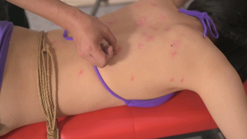妹子的腿今天显得格外长,不知道是角度的原因还是过度减肥的原因,减到这个程度已是最好的状态了,一米七的身高,肩膀和后背看起来却很萝莉,把她双手固定在木枷上,看她扭动屁股和手臂,太喜欢这个味道了,对滴蜡的反应还是蛮大的,剧烈的挣扎真是让人上头,片子未做美颜修饰,滴蜡过后的印记可以看出妹子的皮肤还是相当白皙细致的。