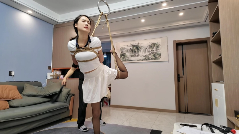 晓倩身材是真好,柔韧性也是绝佳,单腿吊起来先挠脚心,在加鞭打,感受还是非常不错的
