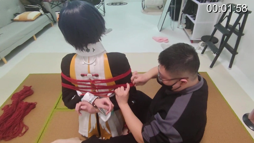 记录下后手缚捆绑过程。最后才捆绑手腕的方法确实有助于快速松解手腕缓解酸麻并重新绑回继续拍摄,很好用。