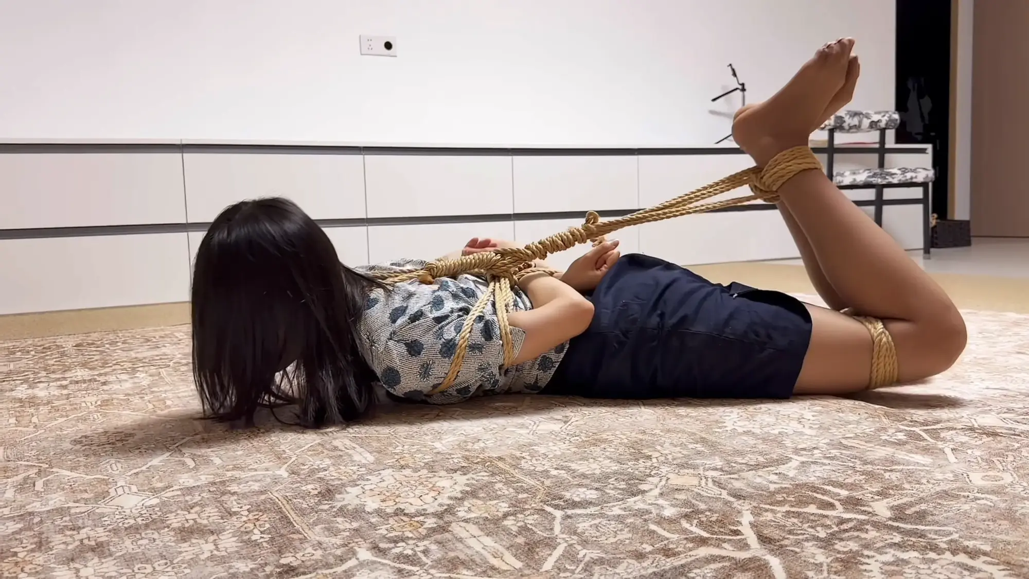 【云雀】新模体验-文文-驷马捆绑空姐服灰丝袜挣扎