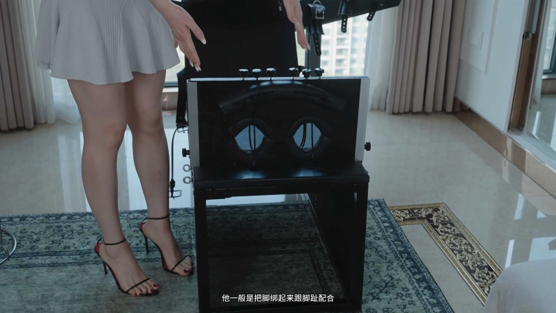 回来后,悠悠介绍了工作室的几个刑椅,尤其重点介绍了新道具跪趴TK刑椅,还亲自趴上去示范。