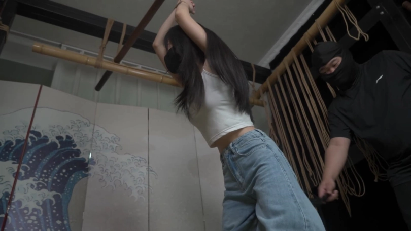 穿着牛仔裤的邻家小姐嗷嗷被跟踪者午夜抓回到房间中玩弄的蜷缩抽搐,