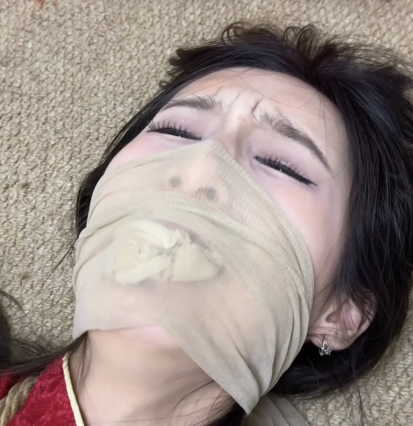 飒爽的女匪小姐木子被扒掉了马甲衬衫长靴换上红色短旗袍和高跟鞋,吊起的双腿、层层的堵嘴、蒙脸的盖头……极致的凄美绝望,而二叔也终于肆无忌惮地伸出魔爪……大红色的婚服和雪白的肌肤被绳索勒出深痕,交杯酒与泪水浸湿了堵嘴的丝袜,细高跟让被缚美腿的挣扎显得更加无力,少女苍白的脸上除了死灰般的屈辱绝望,还有视死如归的坚定,可惜事到如今求生不得求死不能……