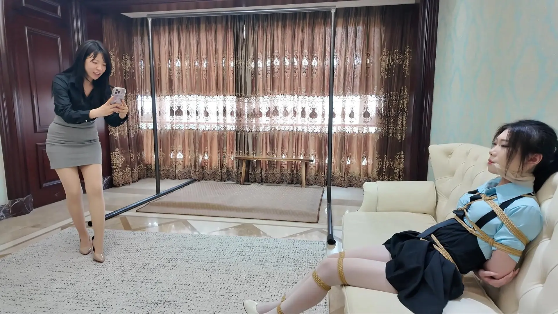 【枫叶】绳缚技术和剧情双重考核!双美米粒芷溪联合演绎!《完蛋!我把美女捆绑了?——路和应聘考核篇》