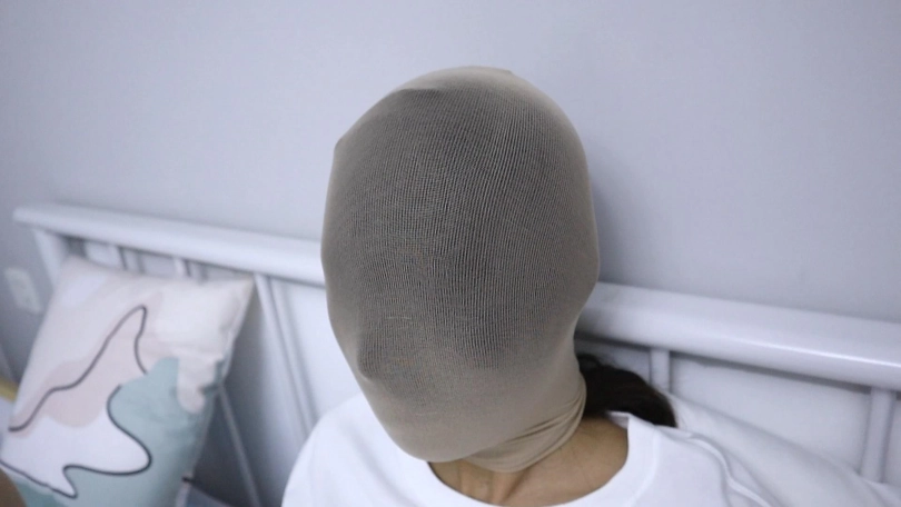 【趾间艺束】叶子丝袜蒙头蒙脸M形开腿秀美足 丝袜包头 一个新的尝试!