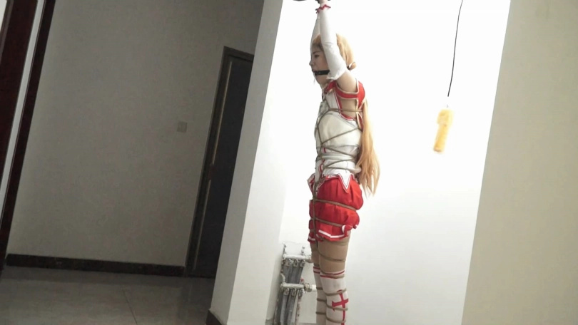 昏迷的亚丝娜被入侵者吊绑起来,不仅用绳索捆绑全身,无法动弹。更是即将要踮着脚尖承受着入侵者残忍的鞭挞……