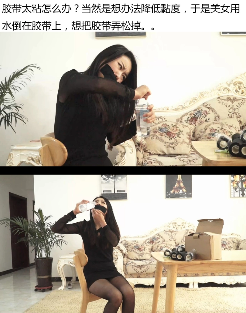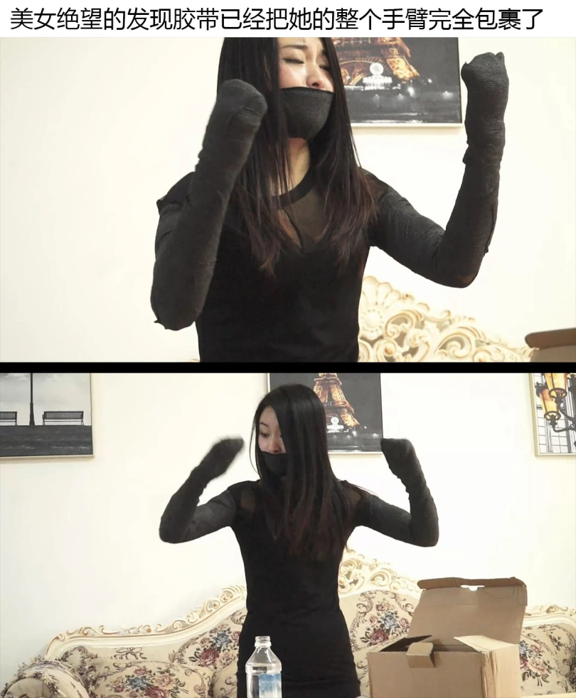 【逍遥】《自动包裹娇躯01》参考漫画 超完美详细的逐步包裹捆绑 黑丝美女不停挣扎 剧情精彩纷呈