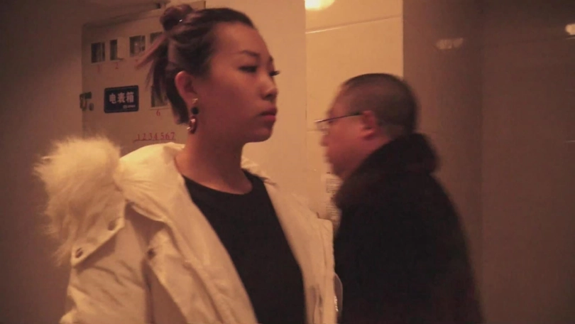 走了一会,美女的蒙眼布,掉了一只,屌丝男没看见,还在点烟,美女趁机跑了,然后屌丝男追,美女又摔倒了,